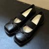 Sheepskin~ Square head pig nose leather shoes elastic band ballet Mary Jane shoes women's thick heel light mouth versatile single shoes