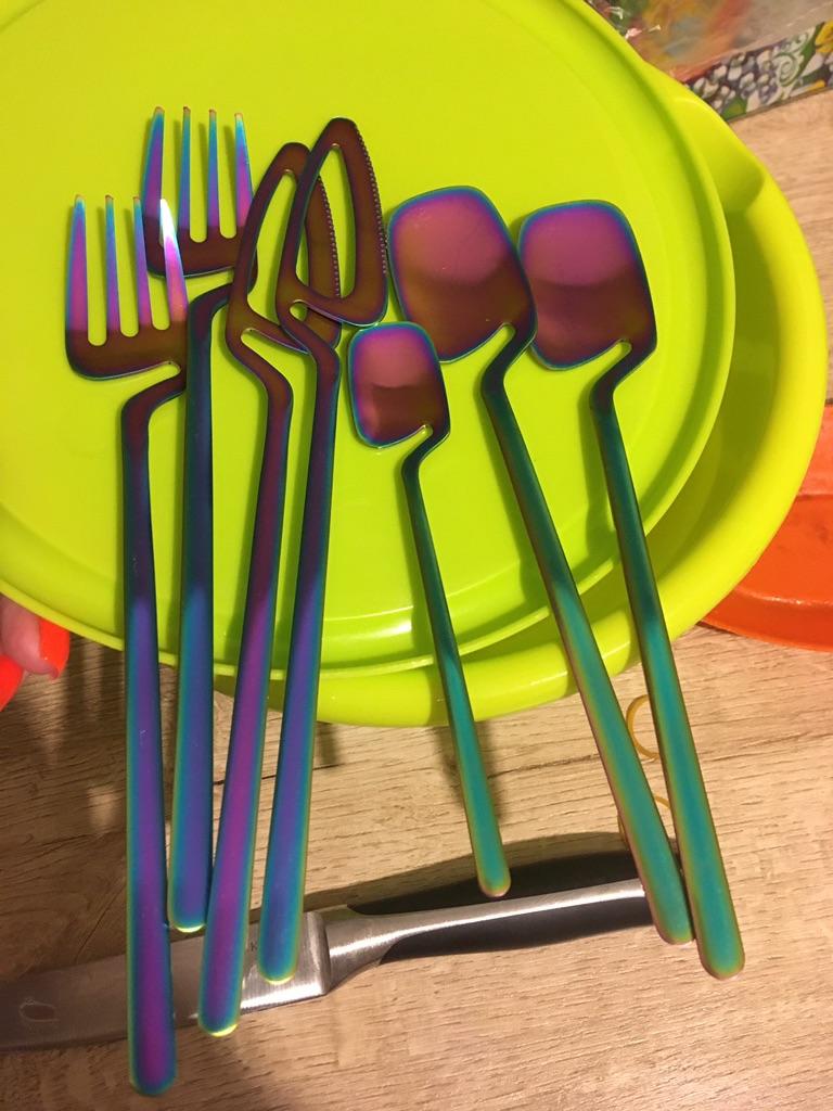 JANKNG Matně černé sady nádobí Kuchyňské dekorace Lžíce Vidlička Nůž Sada nádobí Zlaté příbory Zmrzlinová polévka Káva Použití