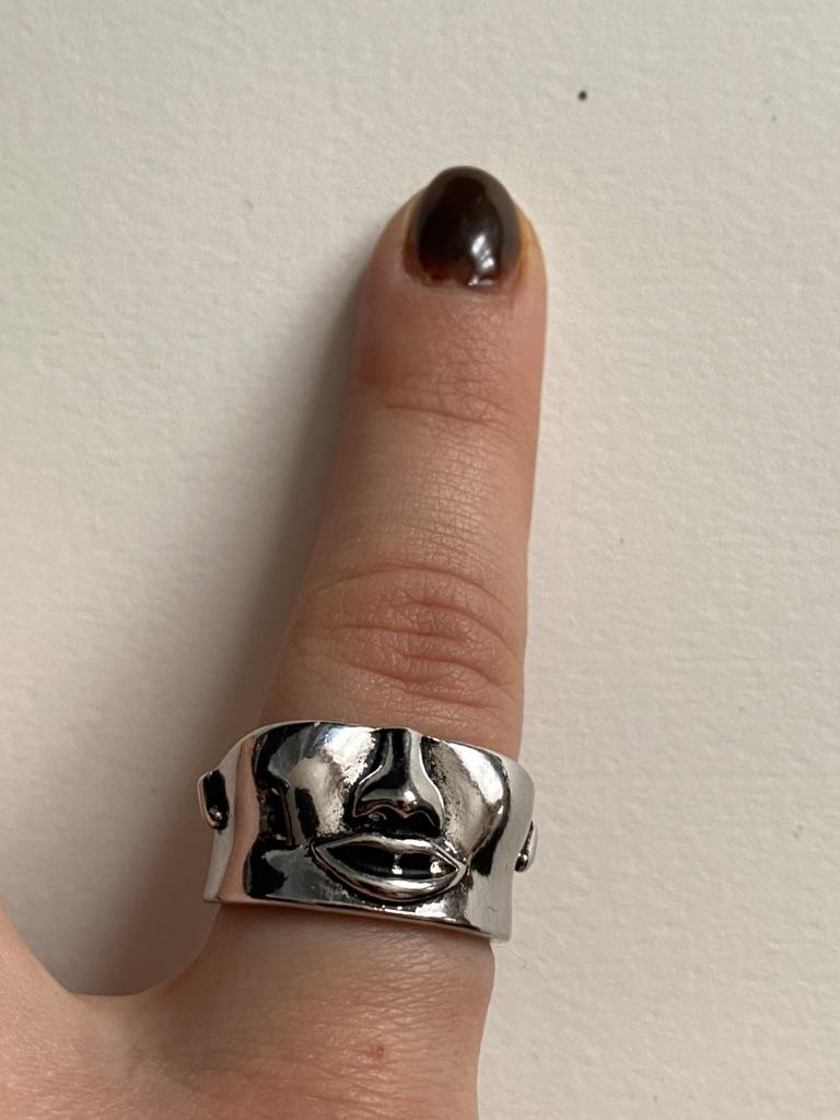 Prsten s kreativním designem Galvanické pokovování textury Prsten na půl obličeje pro muže Trendy Osobnostní prsteny
