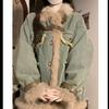 Dámská zimní plyšová džínová bunda Ležérní vycpaná teplá baseballová bunda s bavlnou