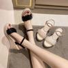 Summer New Elegant Casual Solid Color Wedge Sandals Round Toe Lightweight Open Toe Fashionable Roman High Heels Women NO:5033