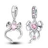 100% 925 mincovní stříbro Módní princezna Růžová mašle Korálky Korálky Fit 925 Originální náramky DIY šperky Dárky k výročí
