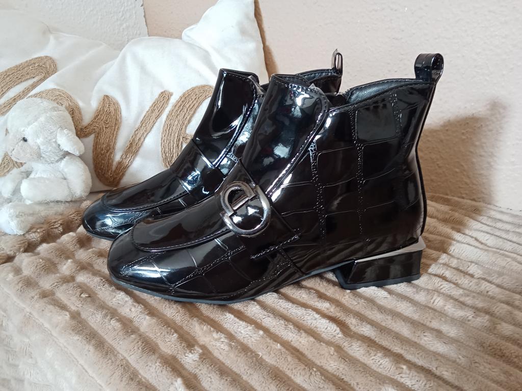 Kotníkové boty, Lakovaná kůže. Dodací lhůta: 🚚🚛✈️✈️✈️19 dní do Německa. Obsah balení: V dodávce obdržíte pár krásných dámských bot v odpovídající velikosti a barvě.. Produkt je k dispozici pouze v černé ⚫️, ve 2 variantách. Produkt je dostupný ve velikostech od 35 do 42 . Objednala jsem si je ve velikosti 38 a jsou pro mě super. Boty jsou menší, proto je třeba je objednat o číslo větší. Normálně nosím boty velikosti 37 EU. Délka mé nohy je 23,8 cm a tyto boty jsou pro mě perfektní. Barva bot je přesně podle vyobrazení.👍👍 👍👍👍👍👍. Jsou velmi lehké a pohodlné, zdají se být kvalitně vyrobené a nemají nepříjemný chemický zápach. TOP!!! S kvalitou bot jsem moc spokojená!👍👍👍✅️To jsou mega boty!!!!👍👍👍👍 Produkt je ideální pro každodenní nošení jako business look 👍 Shrnutí✅️: Velmi pěkné dámské boty, které je třeba objednat o číslo větší. Jsou menší.. Děkuji joom a prodejci 😘😘🙏 5 hvězdiček 🌟 🌟 🌟 🌟 🌟