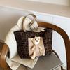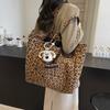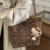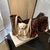 Vintage taška tote s leopardím potiskem a velkou kapacitou, taška přes rameno pro dojíždění s medvědem pro ženy