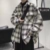 Korean Style Houndstooth Coat Men's Ins Hong Kong Style Retro Woolen Coat Lapel Work Jacket