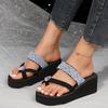 fashion Summer Hot Selling Women's Shoes 2024 Fashionable Solid Color Thong Toe Rhinestone Decorated Super High Heel Women's Slippers