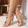 Bohemian Style Fashion Colour Gem Strap Designer High Heels Gladiator Sandals Women Summer Open Toe Wedding Banquet Shoes