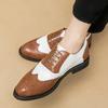 Fashion Large Size Men's Leather Shoes Color Matching Pointed Toe Business Casual Leather Shoes Men's Carved British Retro Shoes