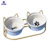 Pet Iron Frame Ceramic Double Bowl Protects Cervical Claw Bone Anti-slip Cat Black Fish Chin Vertebrae Bowl Prevents Cat Pa H4O8