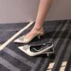 Fashion Black Pointed 18-year Adult Gift High-heeled Single Shoe Women's Flat Buckle Rhinestone 2024 New Side Open Fine Heel Summer
