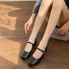 Fashion Sheepskin 2024 Spring and Autumn Square Head Low Heel Shallow Mouth Single Shoes Retro Style Mary Jane Shoes
