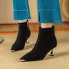 Dámské lodičky s špičatou špičkou a nýty na vysokém podpatku, dámské robustní kovové podpatky, gumové kotníkové boty, květinové černé krátké boty pro ženy