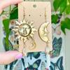 Vintage Bohemian Earrings Style Long Star Moon Quartz Pendant Earrings for Women Creative Fashion Vacation Jewelry Accessories