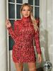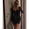 Dámské Sexy Třpytivé flitry bez zad Móda Mini šaty s dlouhým rukávem Tenké večerní šaty Společenské šaty s vysokým pasem do O výstřihu