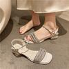 Módní sandály víla vítr střední podpatek 2024 nový všestranný tlustý podpatek drahokamu vinutí římský temperament vysoké podpatky