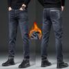 Spring And Autumn New High End Plush Jeans For Men Straight Tube Slim Fit Elastic Thick Casual Pants Autumn And Winter Men'S Pants