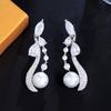 Huitan Elegant Female Gorgeous Pendant Earrings with Bright Zirconia Luxury Lady Engagement Ceremony Party Jewelry for Women