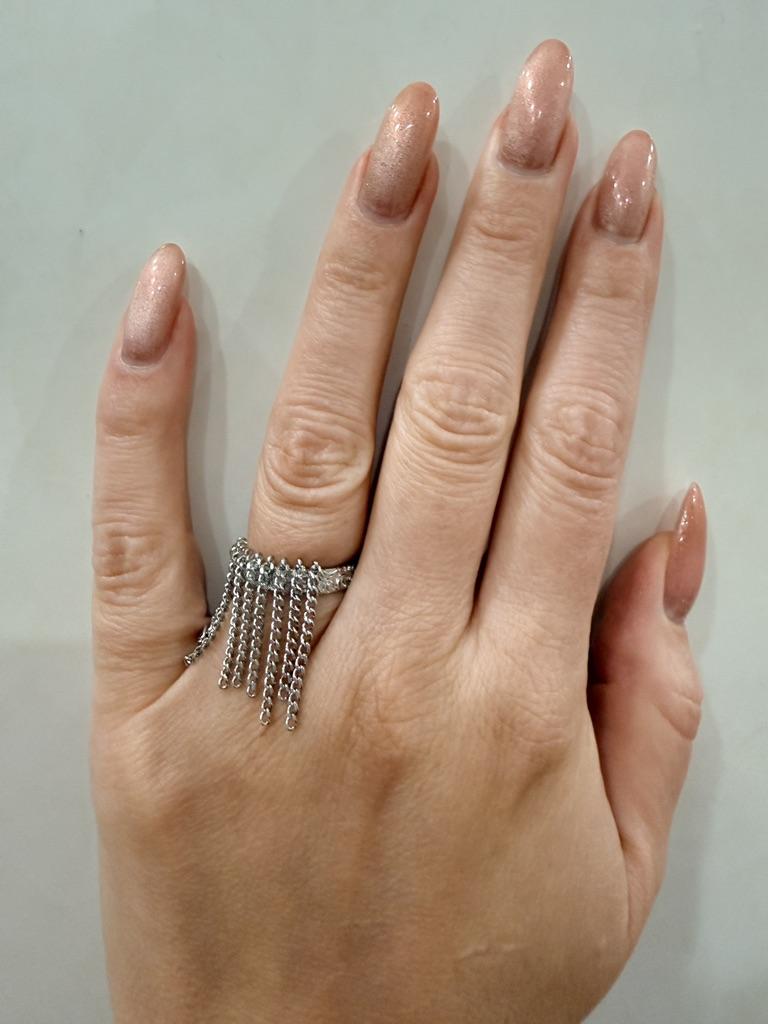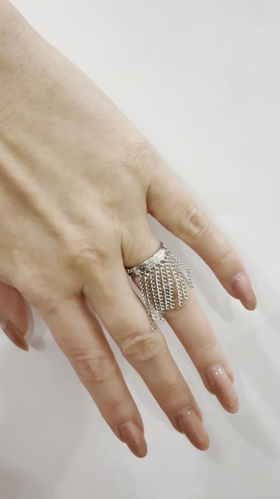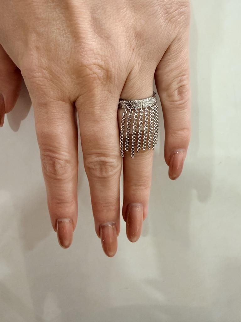 Prsten s řetízkem a střapcem se vzorem Tangcao – Korejský módní design, Trendy high-end styl.