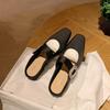 Grape mother summer new model, sparkling diamond buckle small square head width word with commuting versatile low heel temperament half drag girl