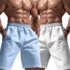Linen shorts drawstring elastic waist straight legs solid color breathable daily beach five-point casual pants
