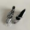 Sheepskin version~ silver flat-soled single shoes women's light mouth Mary Jane shoes one-word buckle bow versatile small leather shoes