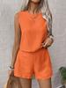 Experience effortless style and comfort with this Women's Solid Color Sleeveless Top and Shorts Set. Designed with a simple yet fashionable appeal, this set is perfect for casual outings. Crafted from high-quality polyester, it offers durability and a soft feel against the skin. The solid pattern and sleeveless top enhance its versatility, making it easy to pair with your favorite accessories. Ideal for warm weather, this set is a must-have addition to your wardrobe for a chic and laid-back look.