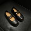 Sheepskin version~ Spring and Autumn new leather inner height increase one-word buckle with shallow mouth Mary Jane single shoes women's flat loafers