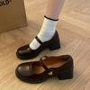 2025 new JK small leather shoes women's thick heel with one-word buckle late evening wind high heel single shoes French Mary Jane shoes
