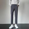 Smart Casual Simplicity Versatile Handsome Solid Color Temperament Straight Tube Slim Men's Cropped Pants Summer Spring New 2024