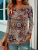 Fashion Women's T shirt Tee Graphic Print Casual Long Sleeve Weekend Vintage Ethnic Crew Neck Regular Fit Painting Fall & Spring