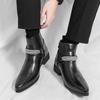 Designer New Men Metal Chain Pointed Toe Casual Ankle Boot Male Winter Fashion Black Brown Chelsea Leather Shoes Zapatos Hombre