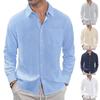 New Bestseller Men's Linen Shirt - Turn-Down Collar, Solid Color, Long Sleeve, Button-Up.