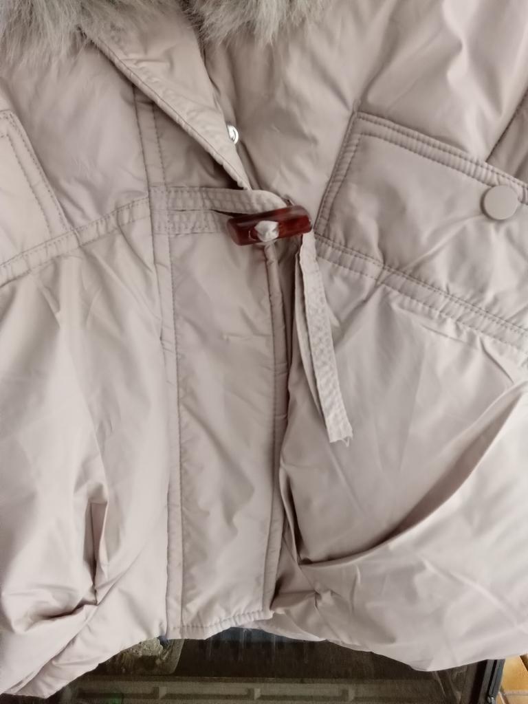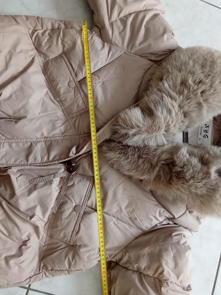 Zimní bunda s náplní a límcem z imitace kožešiny. 👍💝 Povrchové úpravy jsou provedeny správně, ale je malý. 👎😭