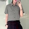 INCERUN Oversized Men Lapel Neck Short Sleeve Plaid Print Shirts Tops