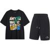 Li Ning Beach Print Fashion Comfortable Versatile Round Neck Pullover Short Sleeve Simple Drawstring Shorts Casual Sports Suit AHSU707-1+AKST593-7