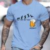 Men's Summer 100 Cotton Fashionable Casual Loose Large Fun Beer Pattern Printed Sports Round Neck Short Sleeve T-shirt Top