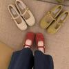 Světle červené jednoduché boty dámské jarní a podzimní nové francouzské retro jemné semišové boty Mary Jane s plochou čepicí
