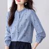 Jarní Podzimní Krajková Patchworková Košile Ženy Květinový Potisk Košile Dámská Volná Ležérní Vintage Pulovr Top s Dlouhým Rukávem
