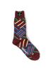 These mid-length socks feature an eye-catching, multicolored patchwork design. With solid color sections and stripes of varying widths in different places, they are a great accent piece for any outfit.