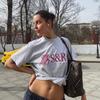 Heather Gray Shoulder Short Sleeve T-shirt for Women 2025 Summer New Arrival Loose Pure Cotton Casual Easiest for Match American Retro Half Sleeve