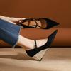 -1 rear empty one-word color matching wedge heels women's and women's summer new pointed thick-soled high heels