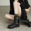 Sheepskin version~ retro polished leather thick-soled medium boots women's wide tube thick heel Martin boots knight short boots western boots