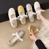 French stunning lace-up ultra-soft leather little white shoes women's round head casual versatile soft-soled ballet Mary Jane shoes women