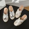 Grape Mom's new summer models increase in height by 6cm~ Literary and retro one-word thick-bottomed wedges woven cool slippers for women's summer wear