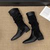 Brown retro but knee thick heel boots children's boots 2025 new autumn thin and heightened heap knight boots