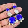 Natural Blue Sapphire Sister Birthday Drop Wedding Art Deco Earrings 925 Silver