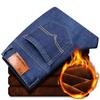 Zima Ležérní Pánské Teplé fleecové džíny Klasický styl Business Hustá kožešina Regular Fit Denim Kalhoty Značka Plyšové kalhoty