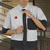 INCERUN Oversized College Style Men Turn-down Collar Tie Long Sleeve Striped Casual Shirts