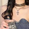 Gotický kříž přívěsek náhrdelník květina vintage choker cool punk kožený choker unisex