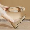 Thick heel single shoes women's 2025 new spring and autumn women's shoes low heel French square head shallow mouth soft leather rhinestone square bu